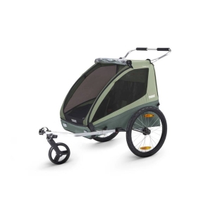 Ein sicherer, bequemer Anhänger, der sich am Zielort leicht in einen Kinderwagen verwandeln lässt.